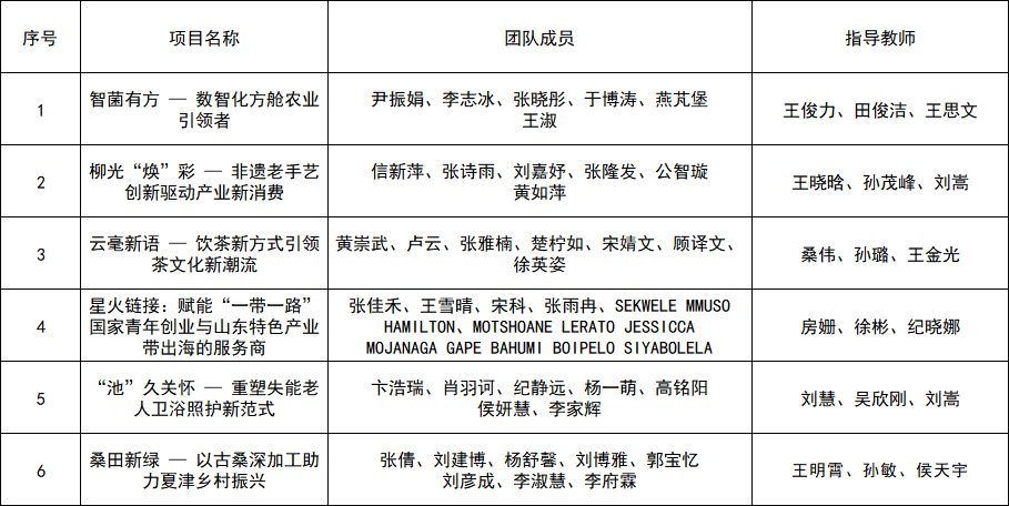 根据《关于举办第十五届“挑战杯”山东省大学生创业计划竞赛的预通知》要求,学院组织开展了第十五届“挑战杯”山东省大学生创业计划竞赛校内选拔赛,经系赛作品推报、路演答辩、复活赛及专家会评等环节,最终确定6项作品推报省赛,现予以公示(名单附后)。