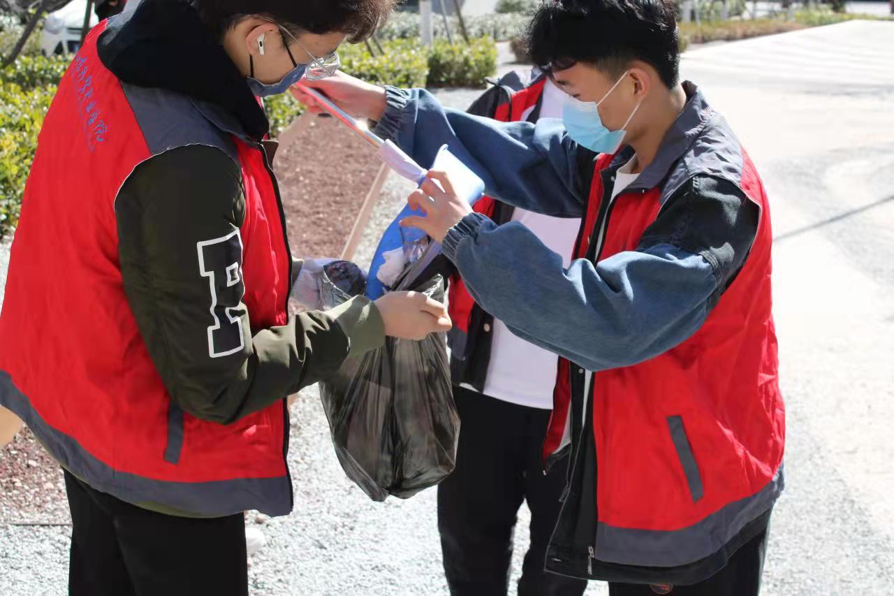 上午9点,学生会成员及志愿者们在图书馆门前集合。负责人就本次活动进行了任务分工,同时向各组发放了手套和清洁工具,随后,大家以小组为单位分别对校园主干道、绿化带、教学楼卫生间等公共设施、区域和卫生死角进行清洁。