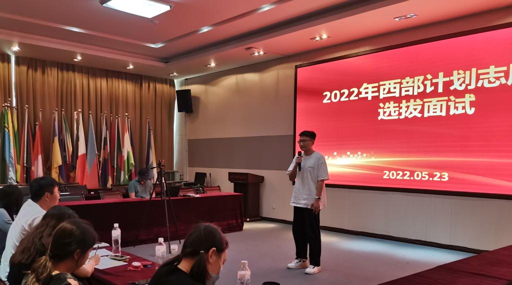 下午面试中,同学们结合自身经历和个人特点,向评委老师们介绍了自己在校期间的日常表现、参与志愿服务的经历、家庭支持度、环境适应能力等,并畅谈了报名参加西部计划的理由以及未来的计划和想法,纷纷表达出对志愿服务的极大热情和扎根基层、投身西部地区建设的坚定决心。