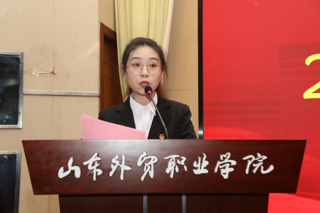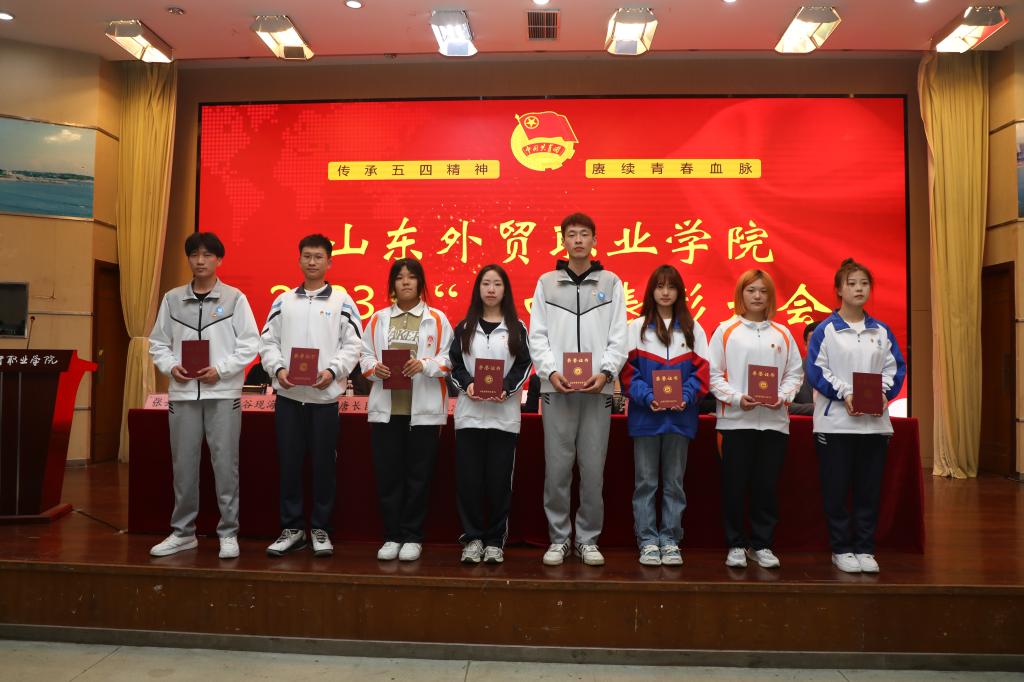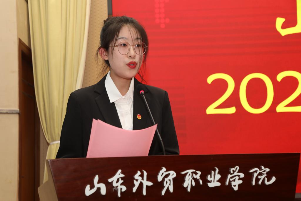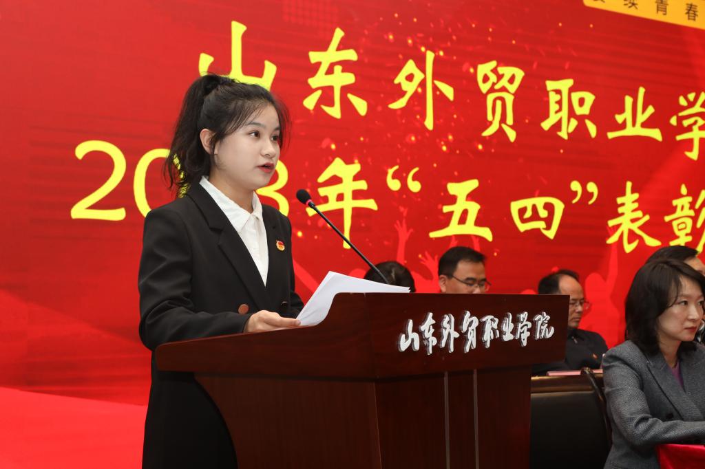 表彰大会在庄严的国歌声中拉开序幕。党委副书记黄维宣读了《关于表彰2022年度“五四”先进集体和优秀个人的决定》,国际贸易系2021级国际商务1班团支部等44个基层团组织荣获“五四先进团支部”称号,财会金融系申美郁等182位同学荣获“优秀共青团干部”称号;商务外语系王馨悦等393位同学荣获“优秀共青团员”称号;信息工程系王玉雯等654位同学荣获“优秀志愿者”称号;经济管理系刘成实等151位同学荣获“最美抗疫志愿者”称号。先进团支部、优秀团员、优秀志愿者和最美抗疫志愿者代表分别进行发言。