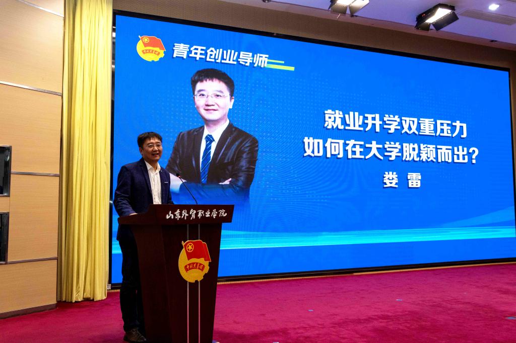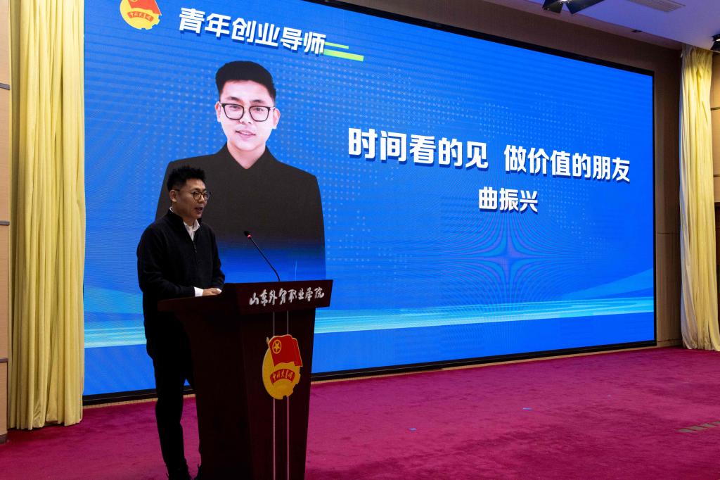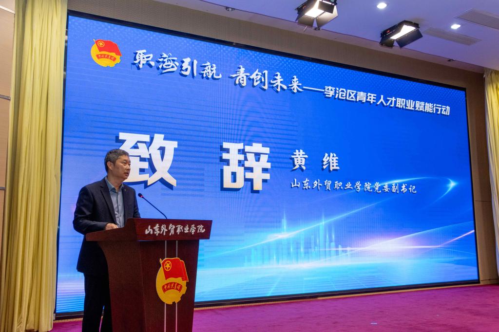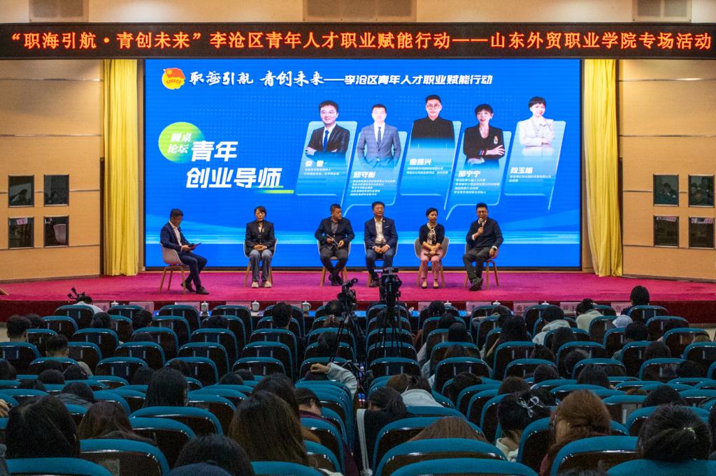 为贯彻落实习近平总书记关于青年工作的重要论述,推动青年人才集聚、创新创业培育、就业服务优化等落地见效,11月7日下午,由学院团委和李沧团区委联合主办的“职海引航 青创未来”李沧区青年人才职业赋能活动——山东外贸职业学院专场在北校区学术报告厅成功举办。共青团青岛市委副书记朱圣坤、李沧区政府副区长胡文国,李沧团区委相关领导及5位来自各行各业的优秀企业家出席活动,学院党委副书记黄维、学生工作处、团委主要负责同志及400余名师生共同参加。