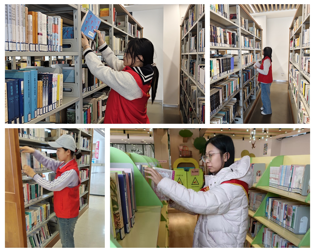 活动中,志愿者在工作人员的指导和帮助下迅速投入工作,他们分工明确、高效开展各项工作。在图书陈列区,志愿者们化身“守护者”,细致核对每本书籍的分类编号并逐一归位,解决了书籍错架、乱架问题,有效提升了图书借阅的便捷性。在服务岗位,志愿者们耐心引导读者借阅图书,维持秩序,以细致周到的服务传递温暖。此外,志愿者们还主动擦拭阅览桌椅、清理角落垃圾、整理报刊杂志,为读者营造了一个干净整洁、舒适温馨的阅读环境。